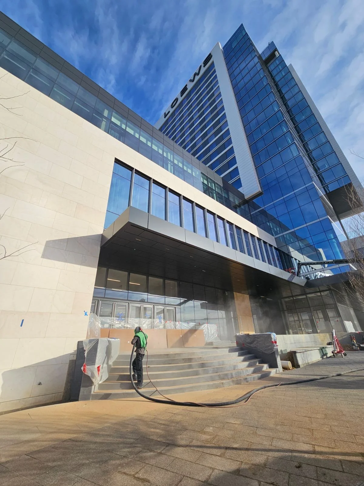 MTS sandblasted over 100,000SF architectural concrete.
