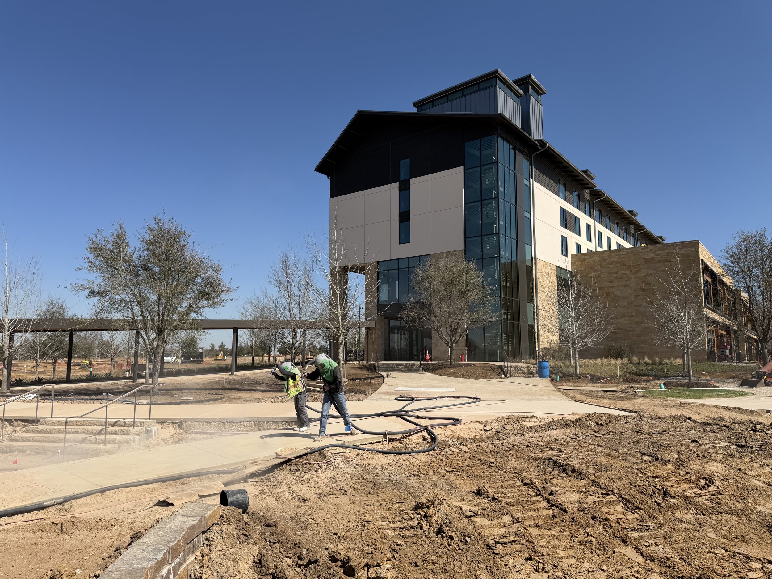MTS sandblasted architectural concrete walkways at ConocoPhillips HQ in Houston, TX.